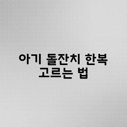아기 돌잔치의 특별함은 그날의 주인공인 아기의 첫 번째 생일을 축하하는 가족의 따뜻한 마음에서 비롯됩니다. 이 특별한 순간에 아기 돌잔치 한복을 어떻게 선택할지 고민하는 것은 부모에게 매우 중요한 과제입니다. 한복은 단순한 의상이 아니라, 우리 전통의 아름다움과 의미를 담고 있기 때문에 더욱 신중하게 선택해야 할 것입니다. 그러면 이제 아기 돌잔치 한복을 고르는 방법에 대한 다양한 측면을 함께 살펴보도록 하겠습니다.한복의 기본 디자인 이해하기 주요 항목 이름 주요 특성 수치 등급 추가 정보(비고) 한복 색상 차분하고 고급스러운 베이지 톤 인기 5/5 아기의 개인 성향에 맞추기 중요 ..